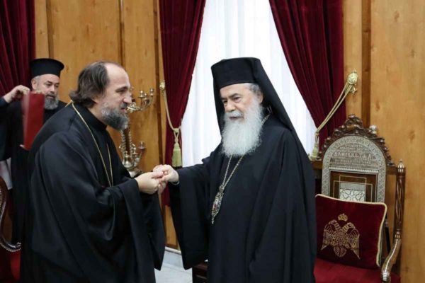 В ответном слове Предстоятель Иерусалимской Церкви подчеркнул, что искренне рад приветствовать нового начальника Русской духовной миссии в Святой Земле и желает ему благословенного служения у святынь Иерусалима.
