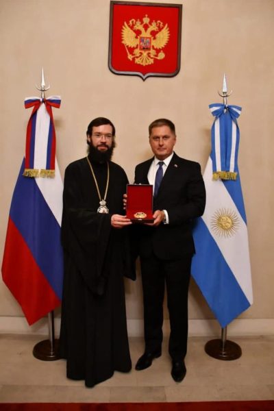 7 февраля председатель Отдела внешних церковных связей Московского Патриархата митрополит Волоколамский Антоний, находящийся по благословению Святейшего Патриарха Московского и всея Руси Кирилла в Буэнос-Айресе для участия в круглом столе «Русская Православная Церковь и соотечественники: опыт соработничества в странах Латинской Америки», встретился с Чрезвычайным и Полномочным послом Российской Федерации в Аргентине Д.В. Феоктистовым.