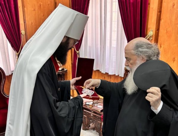 На память о встрече митрополит Антоний преподнес в дар Блаженнейшему Патриарху Феофилу святую панагию.