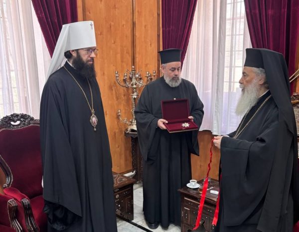 За заслуги перед Иерусалимской Православной Церковью Блаженнейший Патриарх Феофил удостоил митрополита Волоколамского Антония высшей награды Иерусалимского Патриархата –креста и звезды ордена Святого Гроба Господня, пожелав иерарху укрепления от Воскресшего Господа в дальнейшем несении трудного и ответственного служения во главе Отдела внешних церковных связей Московского Патриархата.