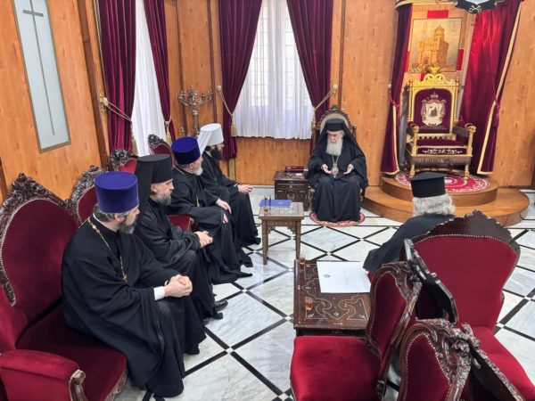 Его Блаженство заверил в своих усердных молитвах у Гроба Господня о русском народе, о Русской Православной Церкви и ее Предстоятеле Святейшем Патриархе Московском и всея Руси Кирилле.
