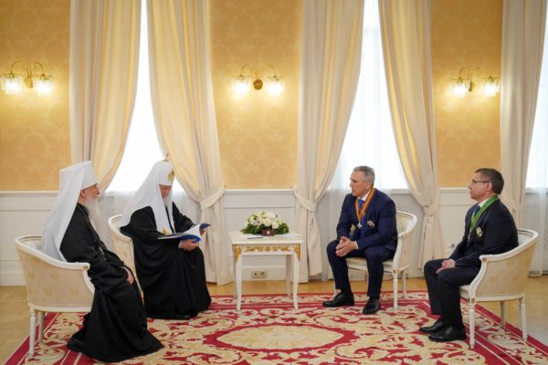Во время встречи губернатор Тюменской области вручил Предстоятелю Русской Церкви фотоальбом с изображениями храмов региона. «Здесь фотографии большого количества больших и малых храмов, которые были построены либо восстановлены во всем нашем регионе, начиная с храмов каменного Тобольского кремля, который Вы лично могли увидеть», — отметил А.В. Моор.