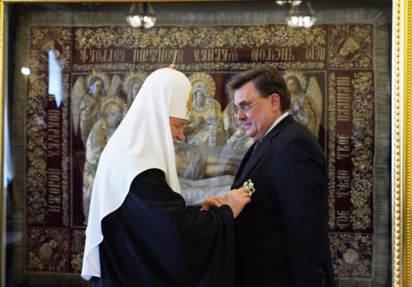 Во внимание к вкладу в развитие церковно-государственных отношений Предстоятель Русской Православной Церкви вручил К.А. Чуйченко орден преподобного Сергия Радонежского II степени.
