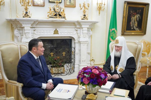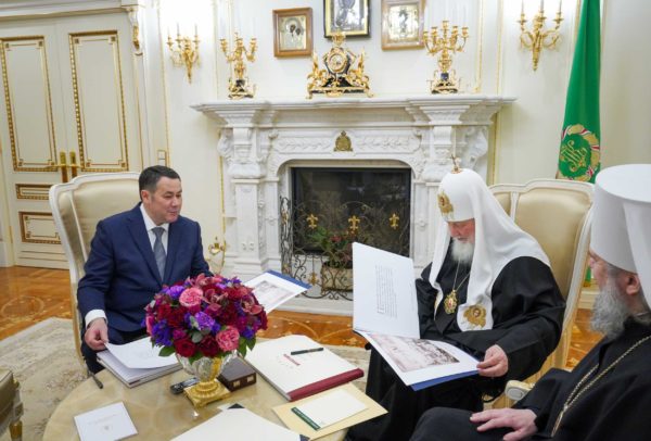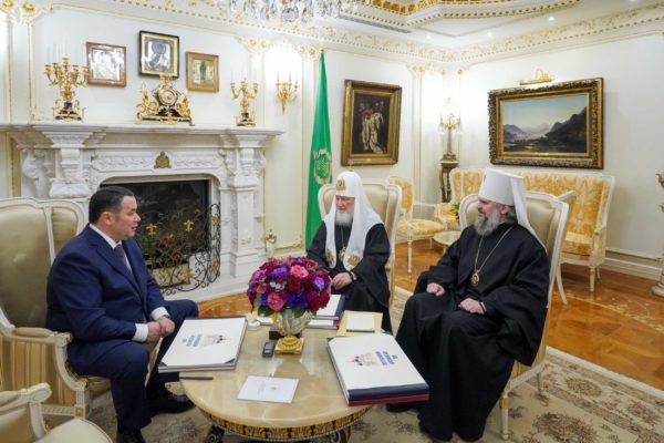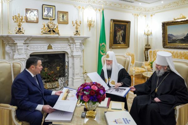 Состоялась встреча Святейшего Патриарха Кирилла с губернатором Тверской области И.М. Руденей и митрополитом Тверским и Кашинским Амвросием