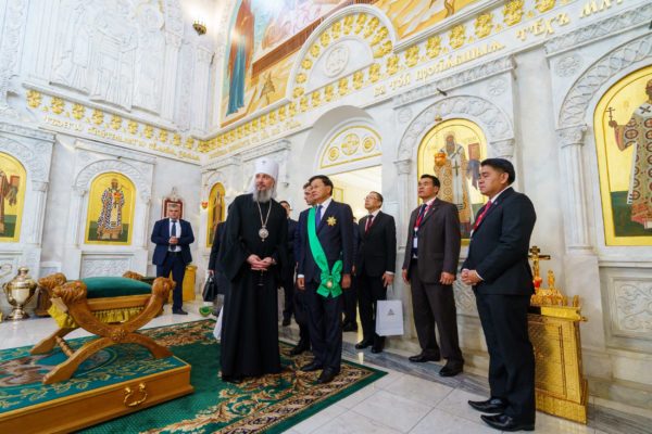 «С Россией Вас связывают годы студенчества: Вы получили образование в родном для меня Ленинграде, а в дальнейшем трудились на ниве развития российско-лаосских отношений, а также в сфере популяризации русского языка», — обратился к Президенту Лаоса Святейший Владыка.