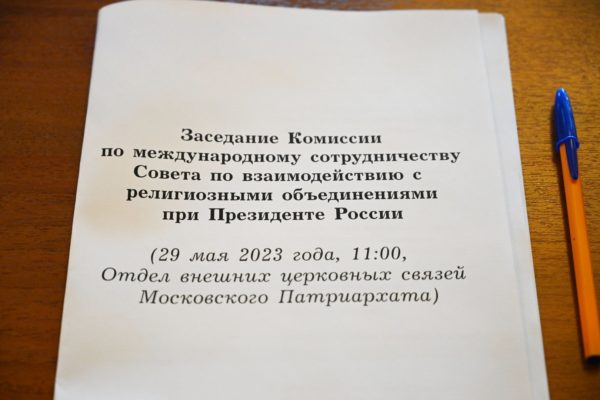29 мая 2023 года в Отделе внешних церковных связей Московского Патриархата прошло очередное заседание Комиссии по международному сотрудничеству Совета по взаимодействию с религиозными объединениями при Президенте России.