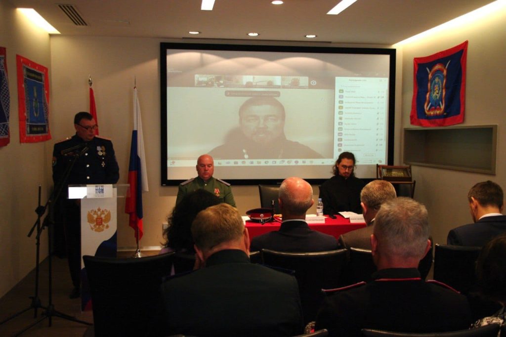 С докладами выступили представители казачьих сообществ: Г.Ф. Крамер, атаман казачьей общины г. Ганновера, ФРГ; А.К. Шестаков, атаман Юртового казачьего общества «Финляндский юрт»; М.А. Василенко, атаман Союза казаков Польши; А.А. Бутенко, атаман казачьей общины г. Гамбурга, ФРГ; Н.П. Клещев, атаман казачьей общины г. Штутгарта, ФРГ. Также на конференции выступили: А.И. Агафонов, профессор кафедры «История и культурология» Донского государственного технического университета; В.А. Троянова, координатор направления «Сохранение исторической памяти. Связь поколений. Казачество» СОРС Испании и Андорры; А.А. Пустобаев, представитель Синодального комитета по взаимодействию с казачеством за рубежом; О.Л. Минаев, член Исторического совета ВКО «Всевеликое войско Донское».