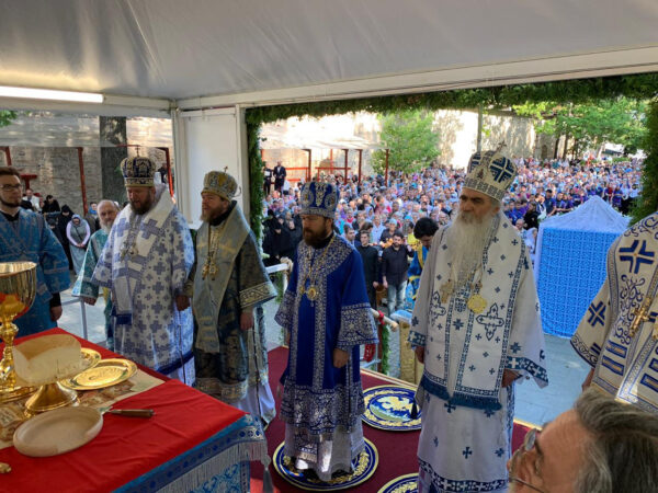 На храмовни празник, 28. августа 2019. године, епископи Иринеј, Антоније и Исихије саслуживали су на Божанској Литургији са Митрополитом волоколамским г. Иларионом, председником Одељења за спољне црквене везе Московске Патријаршије, и митрополитом Тихоном. Служба, којој је присуствовао велики број верника, одржана је у порти испред Саборне цркве Светог архангела Михаила.