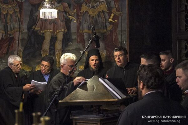 Празничното богослужение беше изпълнено антифонно и украсено от ръководения от д-р Андрей Касабов хор „Св. Наум Охридски“, подкрепен от църковни певци от София и други епархии. Те пееха на дясната певница. На лявата пък за пръв път се изяви гостуващият сборен състав от псалти от съседна Гърция под ръководството на изтъкнатия солунски протопсалт Хрѝстос Халкя́с.