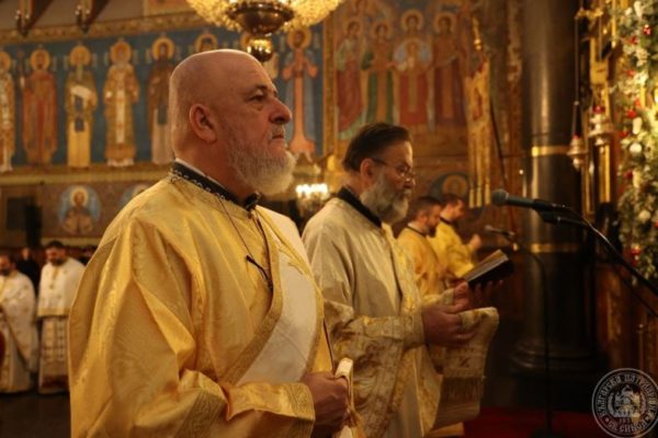 Негово Светейшество съслужи с Техни Високопреосвещенства митрополитите на САЩ, Канада и Австралия Йосиф, Великотърновски Григорий, Ловчански Гавриил, Русенски Наум, Неврокопски Серафим, Старозагорски Киприан, Врачански Григорий, Сливенски Арсений, Видински Пахомий и Преосвещените епископи: Мелнишки Герасим – гл. секретар на Св. Синод, Адрианополски Евлогий – игумен на Рилската света обител, Велички Сионий – игумен на Бачковската света обител, Браницки Йоан – първи викарий на Софийския митрополит, Агатополски Йеротей, Знеполски Мелетий – ректор на Софийската духовна семинария, Драговитийски Василий – игумен на Троянската света обител, Велбъждски Исаак – втори викарий на Софийския митрополит, архим. Епифаний – протосингел на Неврокопска св. митрополия, архим. Януарий – игумен на Искрецкия манастир „Успение Богородично“, ставр. ик. Нелуц Опря – представител на Румънския патриарх у нас, столични свещеници, архиерейски наместници от Софийска епархия и дякони, водени от протодяконите Иван Петков и Деян Коруноски.