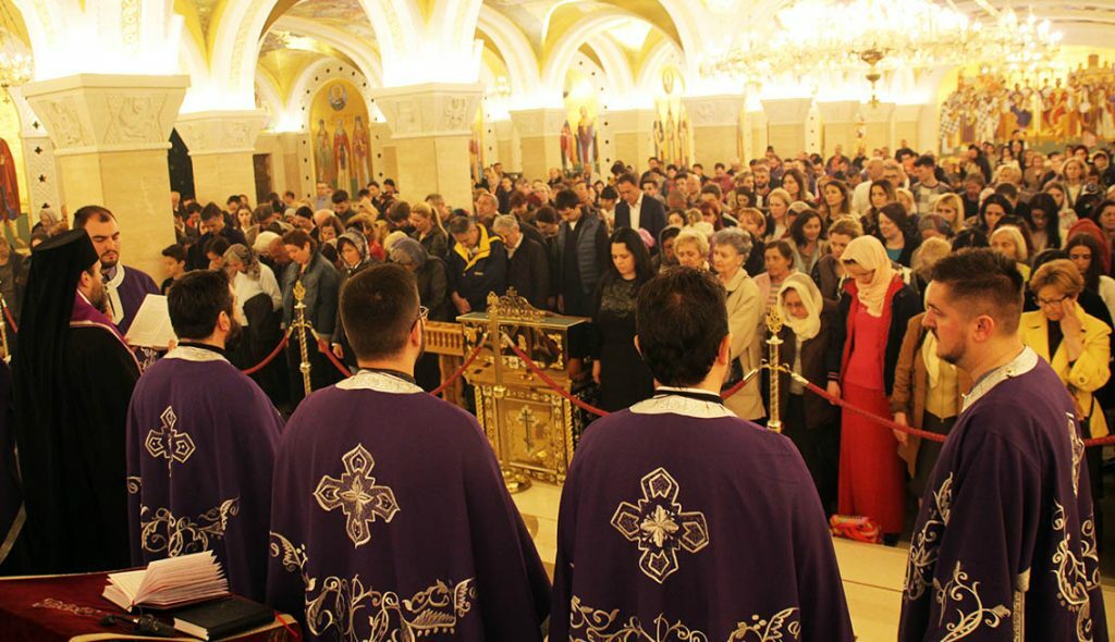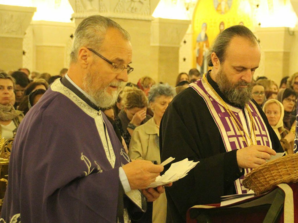 Његово Преосвештенство Епископ ремезијански г. Стефан, викар Патријарха српског и настојатељ храма Светог Саве, служио је 25. априла 2019. године, на Велику среду, свету тајну јелеосвећења у крипти храма Светог Саве на Врачару.