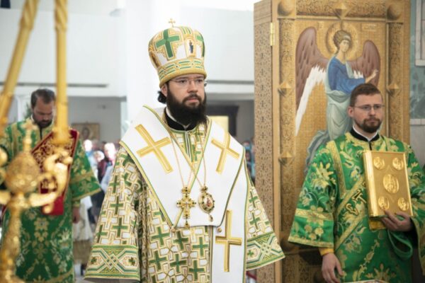 По окончании богослужения Патриарший экзарх Западной Европы обратился к собравшимся с архипастырским словом. Поздравив клир и прихожан собора с престольным праздником, он рассказал о значении праздника Пятидесятницы.