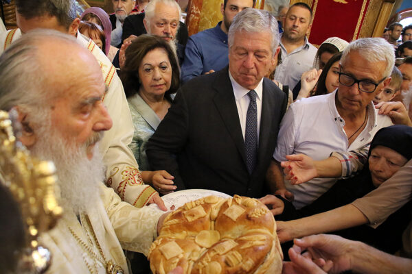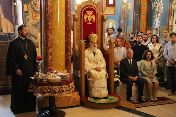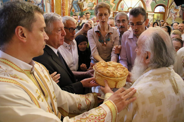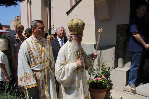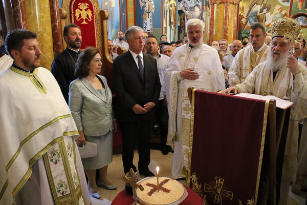 После Свете Литругије уследила је литија око храма и преломљен је славски колач заједно са домаћинима данашње славе, породицама Радивојевић и Драговић. После литије служен је парастос свим свештенослужитељима, ктиторима, добротворима, и свим упокојеним парохијанима лазаричким. Затим је уприличена трпеза љубави за све присутне, а Патријарха и Њихова Краљевска Величанства поздравио је старешина Драгослав Стикић, који је заблагодарио и Богу и Патријарху српском што у молитвама има лазаричко братство и парохијане, те увек са радошћу богослужи у овом светом храму.