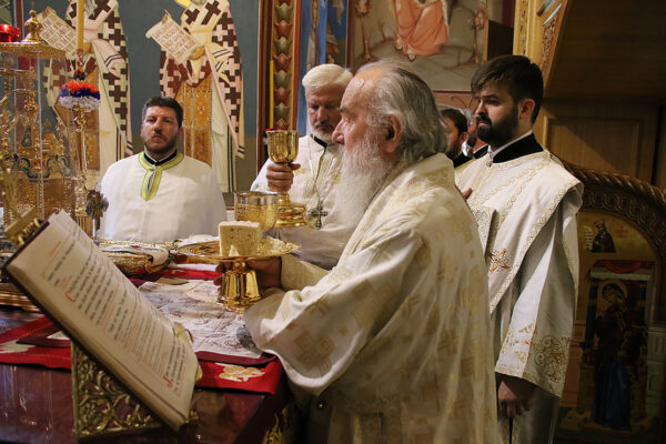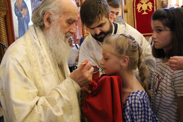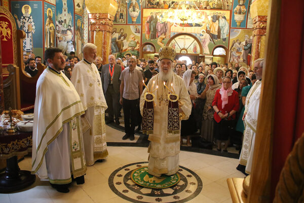 На дан када Српска Православна Црква молитвено прославља Светог великомученика кнеза Лазара и свете патријархе српске Спиридона и Јефрема, Његова Светост Патријарх српски Иринеј служио је Свету Архијерејску Литургију, уз саслужење протојереја-ставрофорâ: Бранка Топаловића, архијерејског намесника београдског; и Мирослава Миленковића, старешине Покровске цркве у Београду; затим јерејâ: Срећка Богићевића и Игора Грацуна, ђаконâ: Мирослава Николића, Драгана Танасијевића и Радомира Врућинића.