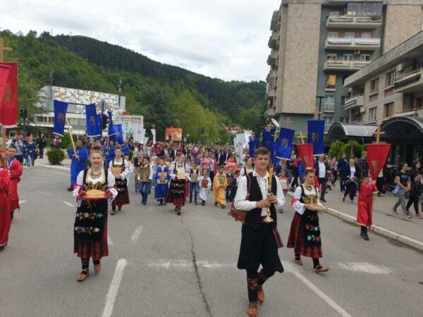 Велики број деце и људи приступио је трпези Господњој, насладошћујући се Пречасним тајнама Христовим. Након заамвоне молитве, из Саборног храма пошла је река људи, њих неколико хиљада, у црквено-народној литији улицама града Пријепоља, у току које су се архијереји помолили за овај богоспасавани град и све његове житеље. Славско жито и славски колач, које је припремио домаћин овогодишње храмовне славе г. Војислав Досковић са својом породицом, освештао је владика Митрофан.