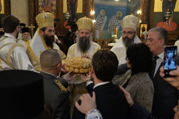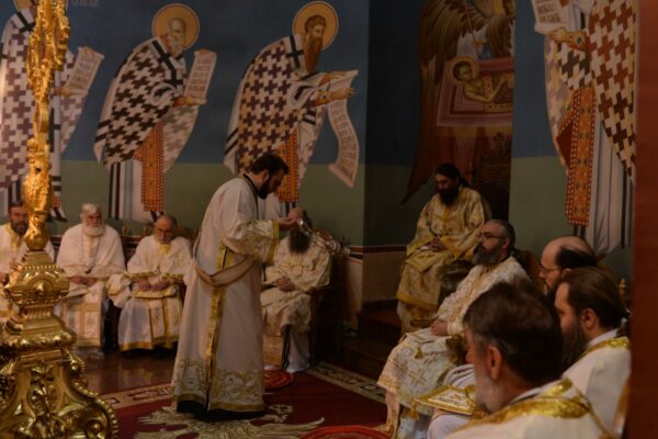 Бројни верници су испунилу нишки Саборни храм, а већина њих се и причестила. У току свете службе служен је чин освећења славских дарова, а пригодном беседом Владики нишком славу је честитао митрополит Порфирије:
