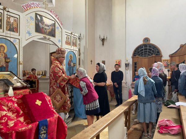Накануне владыка Тихон молился за всенощным бдением, после чего осмотрел ущерб, нанесенный городу в следствие паводка, и побеседовал с прихожанами.