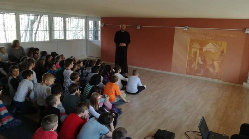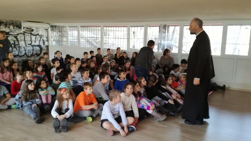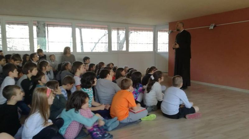 Той им разказа за всички по-големи празници през зимния период на годината, като започна с празника Въведение Богородично и завърши с празника на св. Йоан Кръстител. Беседата се проведе с любезното съдействие на директора на столичното школо г-жа Ивета Германова и преподаватели от училището.