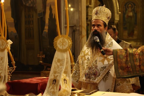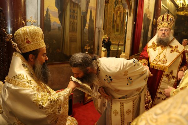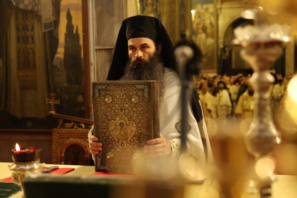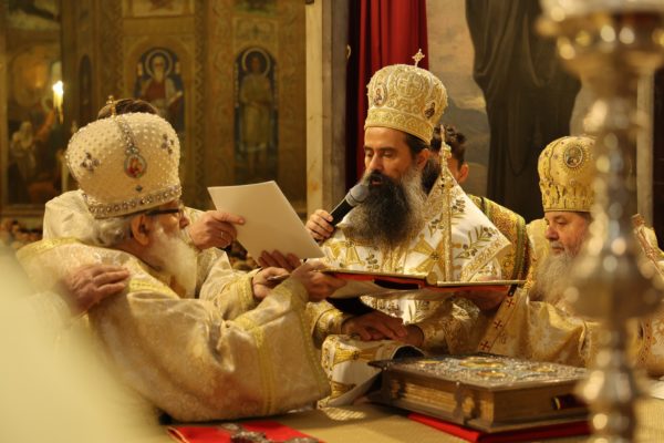 В края на св. Литургия патриарх Даниил връчи на новия епископ жезъл и произнесе слово. „Познаваме Ви като искрено и дълбоко вярващ човек и християнин, като ревностен монах, усърден в иноческите послушания, които Вие някога избрахте да носите в скъпата за всяко православно българско сърце Зографска света обител в Градината на Всесветата Божия майка Света Гора, Атон. Знаем и уважаваме и житейския път, който сте извървели в света и който, спонтанно и съвсем закономерно, извиква в съзнанието ни апостолските слова и призив: Показвайте ревност за по-добри дарби, и аз ще ви покажа път още по-превъзходен (1 Кор. 12:31)“, каза патриарх Даниил и пожела на новия епископ да бъде усърден подражател на свети Климент Охридски и „както и той в своето време подражаваше на своите учители – равноапостолните свети Солунски братя Кирил и Методий, а всички те заедно – на Христа, следвайки съвета на Апостола на народите, който увещава братята в Коринт: „бъдете ми подражатели, както съм аз на Христа“ (1 Кор. 4:16; срв. 1 Кор. 11:1)“.