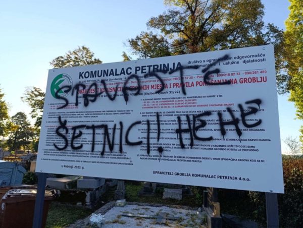 12/09/2024 12/09/2024 У ноћи између 10. и 11. септембра 2024. године, храмови Светог Спиридона Чудотворца у центру Петриње и Светог оца Николаја на православном гробљу у Петрињи нашли су се на мети вандала, који су исписивањем графита упутили поруке мржње и нетрпељивости. Храм Светог Спиридона, чија је изградња започела 2019. године, у седам наврата је мета скрнављења,...