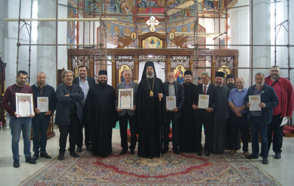 Литургијско сабрање посебно је улепшало појање хора Црквене општине новосадске Свети Јован Дамаскин, под вођством јеромонаха Јеротеја, сабрата манастира Ковиља, а посебну радост је представљало и присуство великог броја верног народа, а нарочито деце. По заамвоној молитви извршен је литијски опход око светог храма. По повратку у храм протонамесник Бранислав Мркић је прочитао одлуку Његовог Преосвештенства Епископа бачког Иринеја којом су господи Дејану Слијепчевићу, Бранку Кривокући и Душку Чомићу додељене архијерејске грамате, као и још девет захвалница другим добротворима храма. Архијерејске грамате и захвалнице је у име епископа бачког Иринеја, уручио епископ Исихије захваливши свима на труду и доброј вољи. На крају се верницима обратио надлежни парох Дојчин Стојановић, који је захвалио епископу Исихију што је својим присуством увеличао прославу храмовне славе.