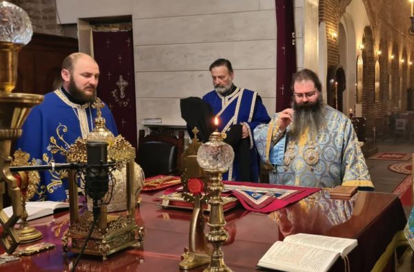 Днес в храма празничната св. Литургия беше отслужена от Мелнишки епископ Герасим, главен секретар на Св. Синод на Българската православна църква. Заедно с него служиха духовниците от храма ик. Васил Танев и свещ. Евтимий Куков, ик. Дилян Цветков, председател на храм „Св. пророк Илия“ в кв. „Княжево“, стажант-свещеникът Константин Атанасов и трима дякони: протодякон Иван Петков, протодякон д-р Деян Коруноски и дякон Ангел Воденичаров. По време на пеенето на причастния проповед за празника произнесе дякон Ангел Воденичаров, помощник-главен секретар на синода. След отпуста на литургията с кратко празнично слово към богомолците се обърна и еп. Герасим. Той изтъкна значението на събитието на Благовещение за спасението на човечеството. И двамата проповедници подчертаха традицията днешният ден да се чества и като празник на жената-християнка.