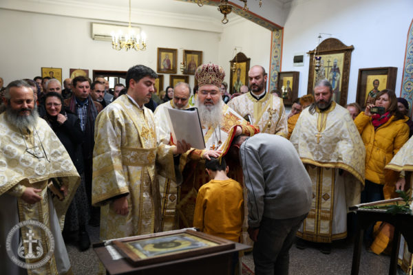 Благолепният храм беше изпълнен от множество християни, които съучастваха в празничната богослужба. Радостта на енорията беше допълнена и от пострижението на двама нови четци, певци и свещоносци – Валери и Борис.