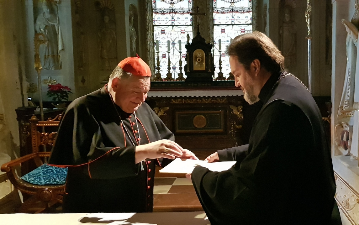 В благодарность за переданную частицу мощей кардиналу Дуке был подарен образ Владимирской иконы Божией Матери, изготовленной в Художественно-производственном предприятии Русской Православной Церкви «Софрино», сообщает сайт подворья Русской Православной Церкви в Карловых Варах.