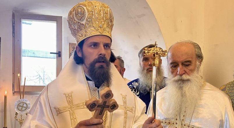 Прије почетка Свете службе Божије Владика Пајсије је извршио мало освећење храма.