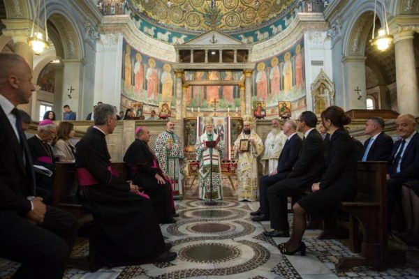 След св. Литургия всички участващи в богослужението и гостите, при пеенето на тропара на св. Кирил и Методий, се поклониха на мощите на св. Константин-Кирил Философ в параклиса на св. Братя и с шествие слязоха при неговия гроб в криптата на базилика „Сан Клементе“, където беше отслужен благодарствен молебен по повод празника.