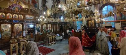 Красивата просторна псевдобазилика, построена през 1856-1884 г. и обновена в началото на 21 в. с нов иконостас във възрожденски стил и великолепни съвременни стенописи във византийски стил, се изпълни от голямо множество вярващи, които се поклониха на Богородичната плащеница, изнесена и поставена на централно място в храма.