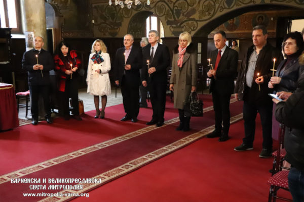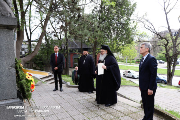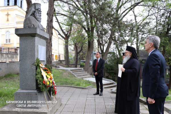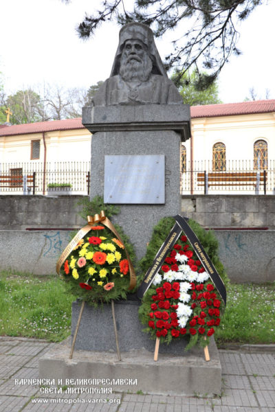 Именно поради тази причина, веднага след молебена, Негово Високопреосвещенство митрополит Йоан, ректорът на Шуменския университет проф. д.и.н. Георги Колев, доц. д-р Юрий Проданов – председател на общото събрание на ШУ “Епископ Константин Преславски”, представители на академичната общност и гост-лектори, поднесоха венци пред паметника на видния български архиерей, намиращ се в близост до храма, посветен на празника Възнесение Господне.