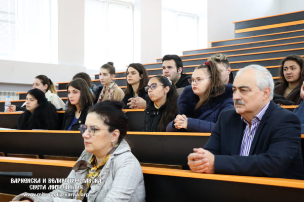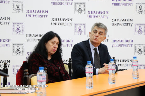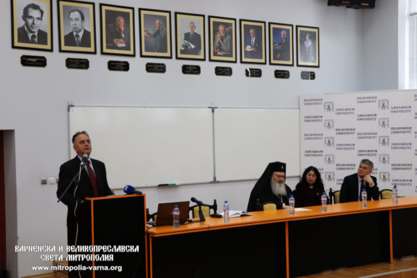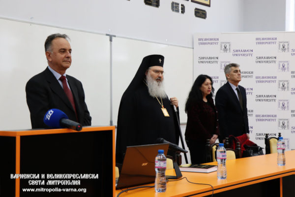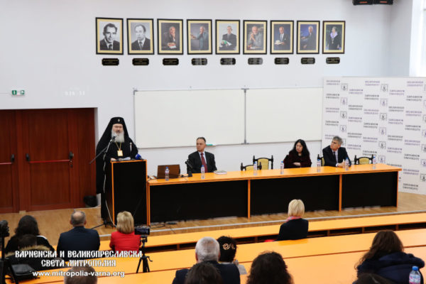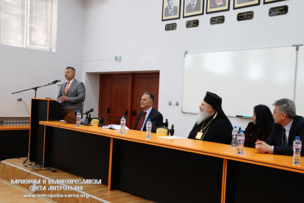 Думата беше дадена на митрополит Йоан, който отбеляза, че историята на Църквата, включително и тази на Българската църква, “ясно свидетелства за дълбокото проникване между православната ни християнска духовност и църковната просвета, ярък пример за което е и личността и делото на нашия велик предшественик – Варненския и Преславски митрополит Симеон.”