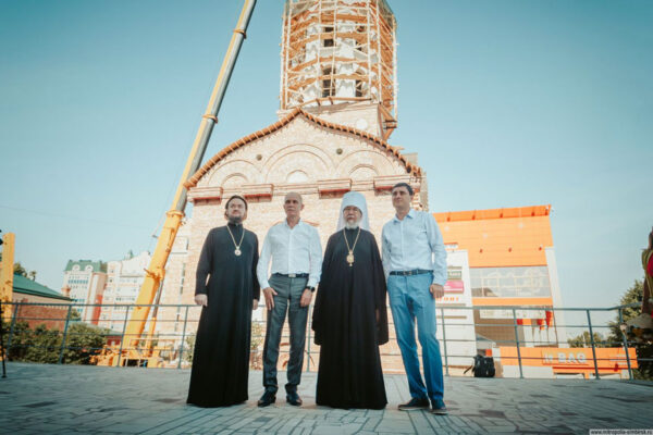 Члены Симбирского отделения ИППО приняли участие в установке купола и креста храма во имя Симбирских святых