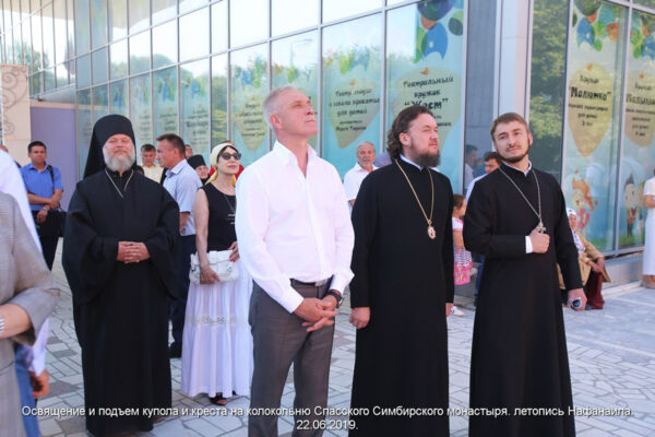 22 июня, в день отдания праздника Пятидесятницы, члены Симбирского отделения ИППО приняли участие в установке и освящении купола и креста на колокольню надвратного храма во имя Симбирских святых, строящегося на территории Спасского монастыря.