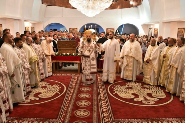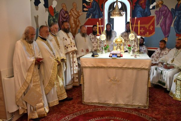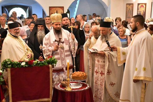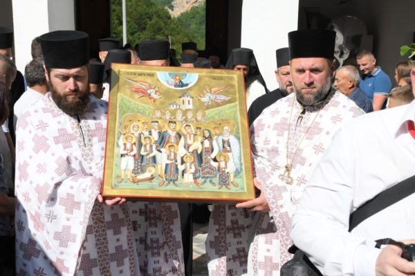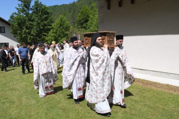 Свету архијерејску Литургију у манастирском храму Светог великомученика Георгија служио је Његово Преосвештенство Епископ бихаћко-петровачки г. Сергије. Саслуживали су свештеномонаси, свештеници и ђакони из више епархија Српске Православне Цркве. Непосредно пред почетак свете Литургије у манастир су свечано донете икона и мошти мученика јањских страдалих у Јању и околини током Другог светског рата. Светиње су свечано литијски унесене у манастирски храм где се потом служила света архијерејска Литургија. После заамвоне молитве извршена је литија са иконом и моштима јањских мученика, а затим и благосиљање славских приноса.
