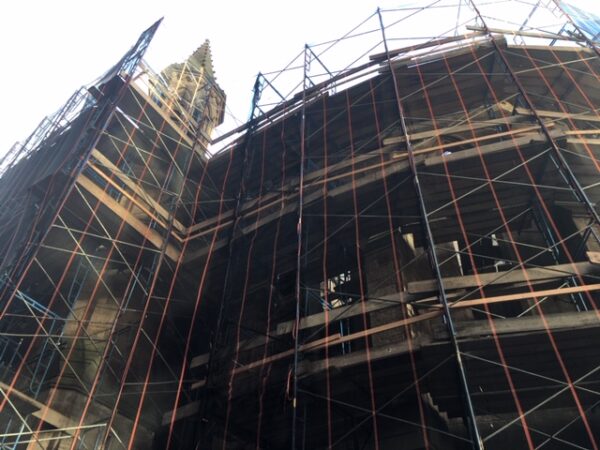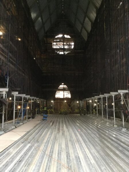 Прави скуп вештина особља које ради на обнови наше вољене Катедрале, виђен је у начину како дизалица вешто спушта сваку масивну греду у још увек отворену, олтарску апсиду. После постављања новог пода, апсида ће добити свој благи, полуовални нагибни кров, чиме ће бити покривен олтарски простор и финализована кровна конструкција.