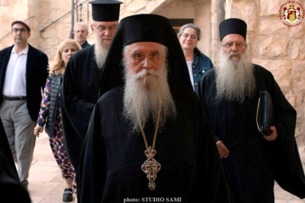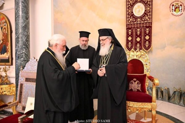 وبعد الخدمة، توجّه أعضاء المجمع المقدس، والأرشمندريت سيميون، وأعضاء أخويّتَي القبر المقدّس وسيناء، إلى قاعة العرش في موكب مهيب. وهناك، استقبلهم صاحب الغبطة كيريوس كيريوس ثيوفيلوس الثالث بمحبّة أبوية، وقام قدس الأرشمندريت المنتخب بأخذ بركة غبطة البطريرك، وتبادل الطرفان أطراف الحديث، ما خَلَق لحظة مضيئة جديدة في مسيرة كنيسة أورشليم أم الكنائس.