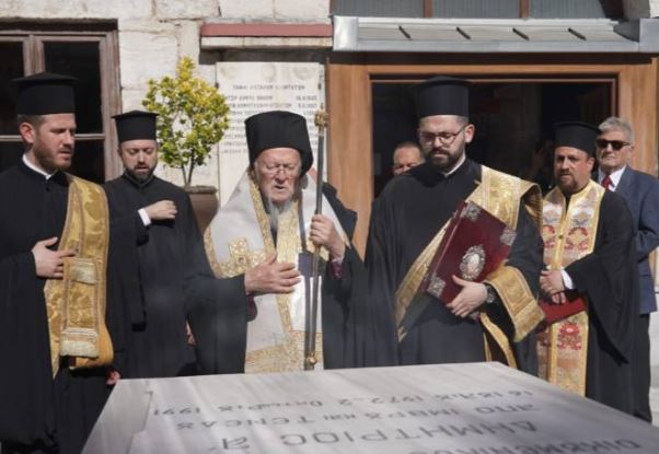 واقام عند قبر سلفه المثلث الرحمات البطريرك المسكوني ديمتريوس الأول تريصاجيون تخليداً لذكرى جميع البطاركة الإسلاف اساقفة القسطنطينية وفي الجانب الاخر من الشعب المحسن للكنيسة . ثم ذهب إلى المقبرة الثانية المجاورة للدير حيث اقام تريصاجيون لراحة نفوس “آبائنا وإخوتنا الذين يعرف الرب أسماءهم”.