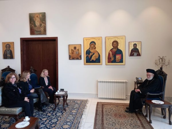 استقبل سيادة متروبوليت بيروت وتوابعها المطران الياس عوده السيدة ترايسي شمعون على رأس وفد نسائي.