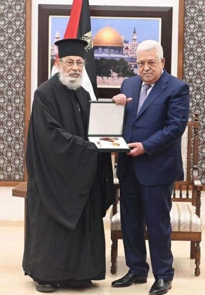 منحَ اليوم الثّلاثاء الرّئيس عبّاس الأرشمندريت قسطنطين قرمش نجمة القدس من وسام القدس تقديرًا لمسيرتِهِ الوطنيّةِ والنّضاليّةِ المُشَرِّفَةِ خلالَ سنواتِ عملِهِ الطّويلةِ نائبًا لرئيسِ المجلسِ الوطنّي الفلسطينيّ