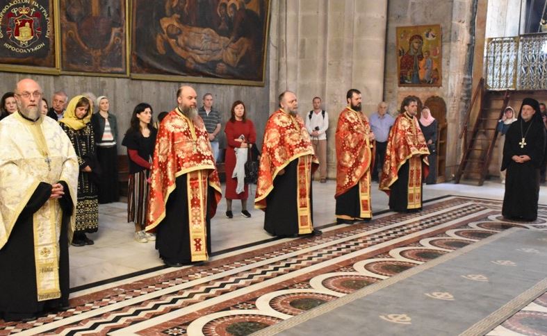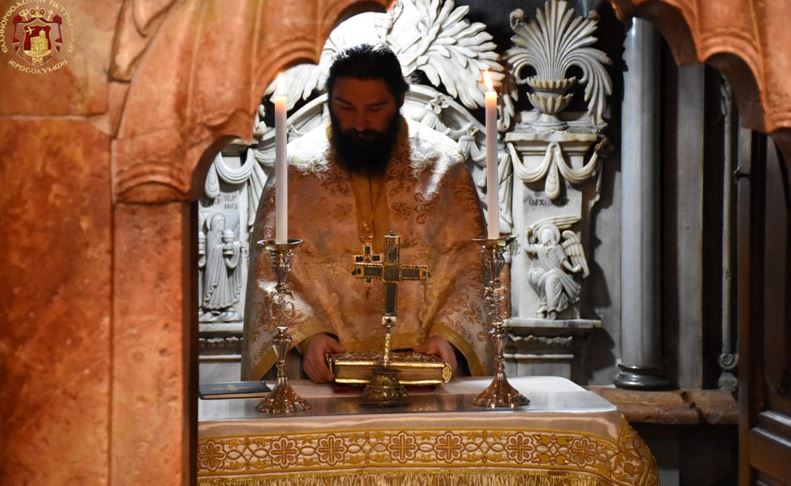 يوم الأحد صباحاً ترأس خدمة القداس الالهي في كنيسة القيامة التي تُقام في القبر المقدس حسب البروتوكول الكنسي للبطريركية الأورشليمية, سيادة متروبوليت كابيتاليس أيسيخيوس بشاركة سيادة رئيس أساقفة اللد وسكرتير المجمع المقدس كيريوس ذيميتريوس وأسقف من الكنيسة الروسية وآباء أخوية القبر المقدس.