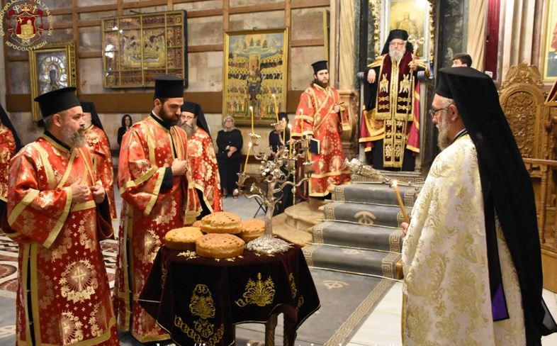 في يوم برامون العيد اقيمت في كنيسة القيامة حسب الطقوس المتبعة في البطريركية خدمة صلاة الغروب في كنيسة الكاثوليكون. ترأس هذه الخدمة المقدسة سيادة متروبوليت كابيتاليس أيسيخيوس يشاركة آباء أخوية القبر المقدس.