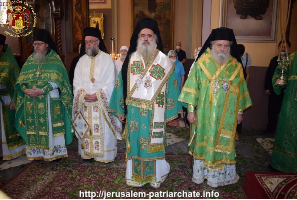 اقيم في كنيسة الثالوث القدوس التابعة للكنيسة الروسية في المدينة المقدسة اورشليم (القدس الغربية) قداس الهي بمناسبة عيد الروح القدس في يوم اثنين العنصرة الموافق 8 حزيران 2020 ترأسه غبطة البطريرك كيريوس كيريوس ثيوفيلوس الثالث يشاركه في الخدمة أصحاب السيادة متروبوليت كابيتاليس كيريوس ايسخيوس, رئيس أساقفة قسطنطيني كيريوس أريسترخوس، رئيس أساقفة سبسطية كيريوس ثيوذوسيوس، متروبوليت الينوبوليس كيريوس يواكيم, رئيس البعثة الروحية الروسية MISSIA الارشمندريت اليكساندوس آباء وشمامسة من أخوية القبر المقدس, وكهنة وراهبات الكنيسة الروسية.