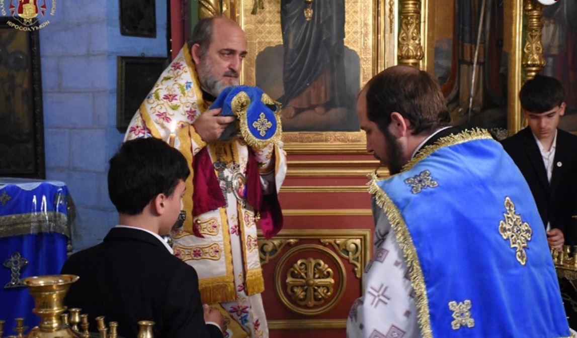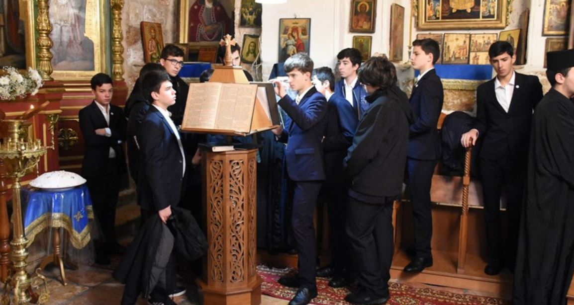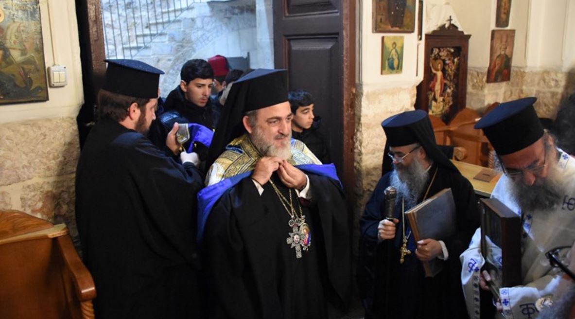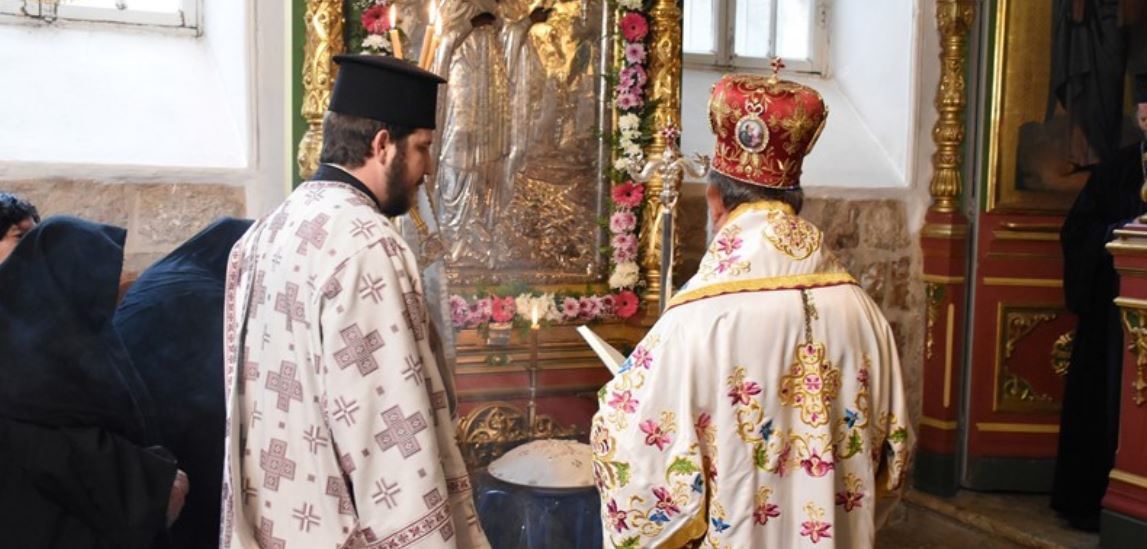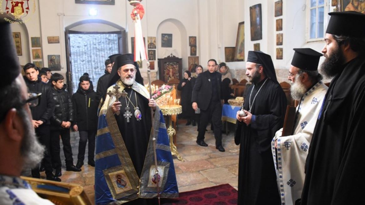 ترأس خدمة القداس الالهي سيادة متروبوليت الينوبوليس يواكيم يشاركة كهنة ورهبان من أخوية القبر المقدس بحضور عدد من زوار الدير والراهبات وأبناء من الطائفة العربية ألاورثوذكسية والجالية اليونانية في البلدة الذين تقدموا لتناولة الاسرار المقدسة, وبعد القداس استضاف رئيس الدير ألارشمندريت ستيفانوس غبطة البطريرك مع ألاباء والحضور في قاعة الدير.