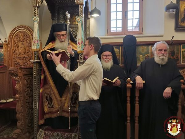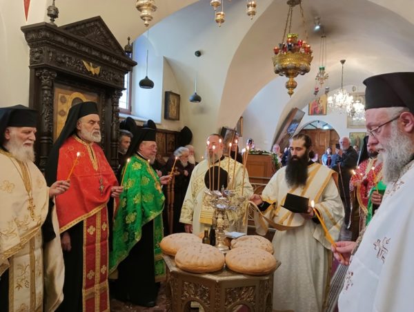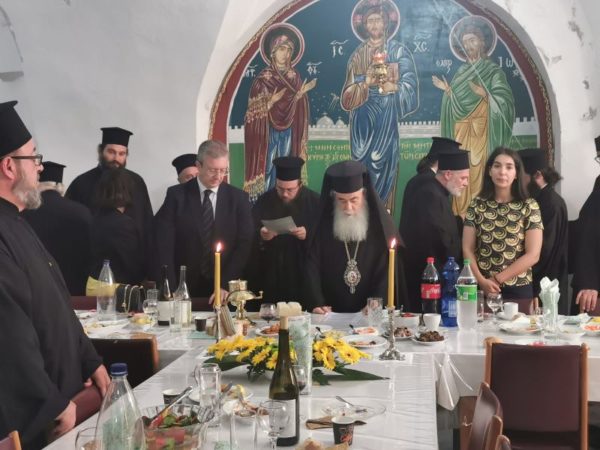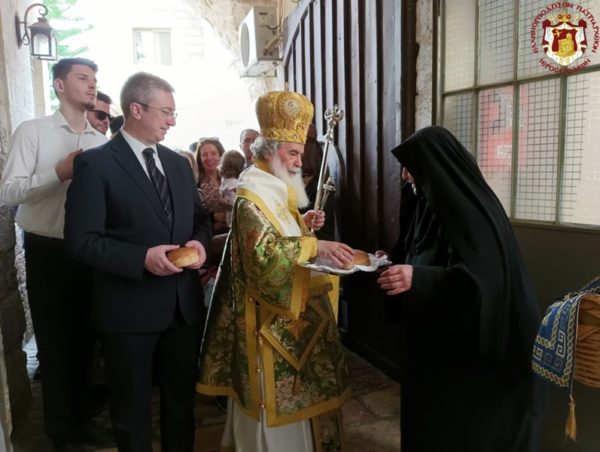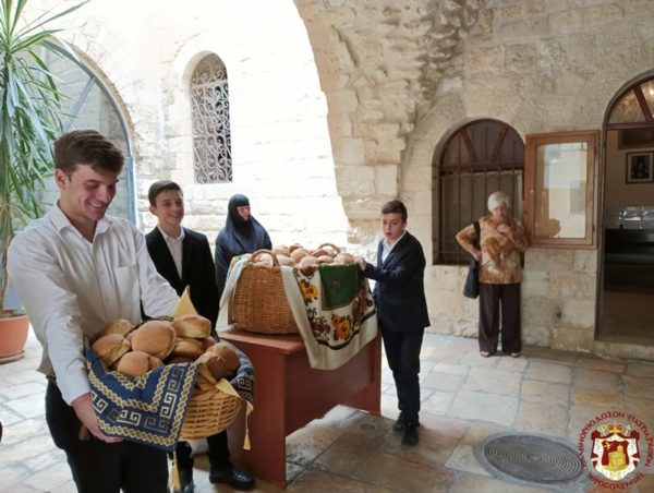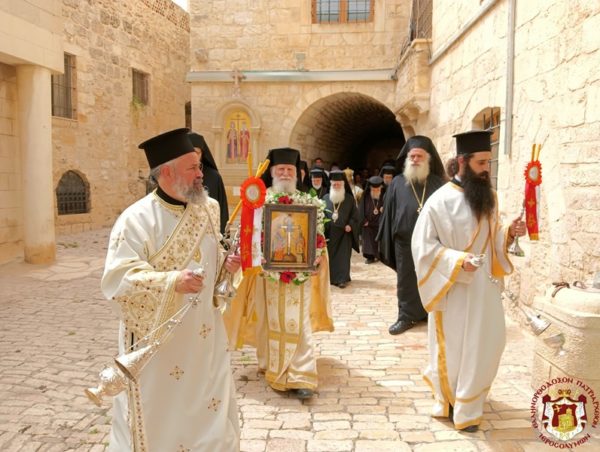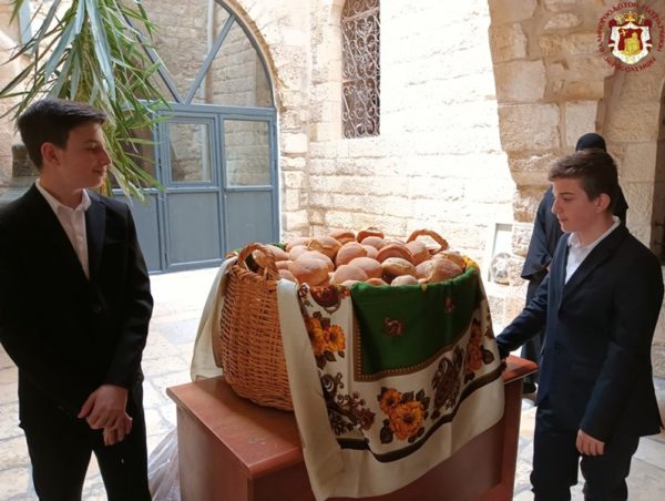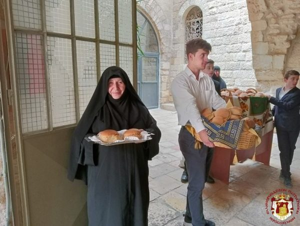 صباح يوم العيد ترأس خدمة القداس الالهي صاحب الغبطة بمشاركة آباء أخوية القبر المقدس وآباء من بطريركية موسكو وبطريركية رومانيا, وحضر القداس الإلهي المطرانة يوحنا وذمسكينوس من بطريركية صربيا, القنصل العام لليونان في القدس السيد إيفانجيلوس فليوراس مع طاقم العاملين في القنصلية, والسيدة زوزوناكي من الإتحاد الأوروبي وعدد كبير من المصلين المحليين وحجاج من خارج البلاد. بعد الخدمة قامت المتقدمة في الراهبات الراهبة سيرافيما بتوزيع الخبز المُبارك على بوابة الدير المركزي, وتوجه غبطة البطريرك مع الآباء الى دار البطريركية للمعايدة.