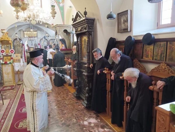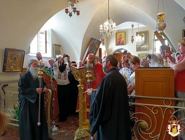 ولإن هذا واجبٌ وديّنٌ علينا فقد أتممنا بطريركياً خدمة القداس الإلهي في كنيسة الدير المشيدة على اسمي القديسين العظيمين المتوجين من الله والمعادلي الرسل قسطنطين وهيلانة مع لفيفٍ من أبناء رعايانا المسيحين المصلين معنا والزوار الأتقياء من بلاد الإغتراب.