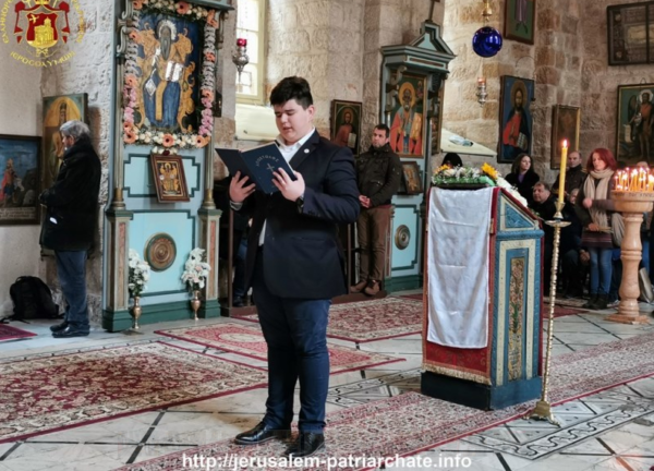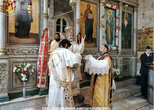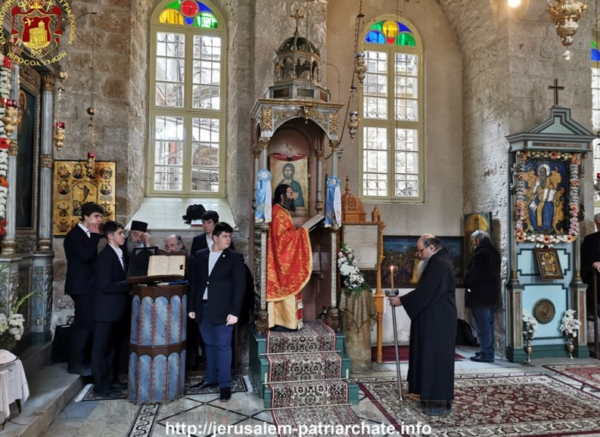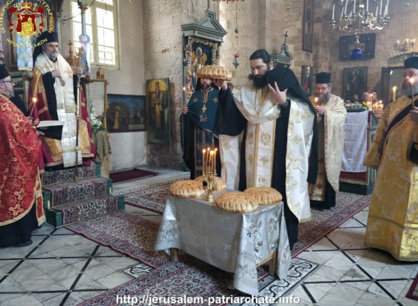 ترأس سيادة رئيس اساقفة جرش كيريوس ثيوفانس خدمة القداس الالهي لصلاة العيد يشاركه عدد من آباء ورهبان اخوية القبر المقدس والمُحنفل بعيد شفيعه قدس الأب فرح بنوره وبمشاركة طلاب المدرسة البطريركية وأفراد من القنصلية اليونانية في القدس وعدد من المصلين محليين وحجاج من خارج البلاد. وخلال القداس ألقى سيادة المطران ثيوفانس عظة روحية تحدث فيها عن حياة القديس العظيم ووصف استشهاده كمثال للجهاد الروحي.