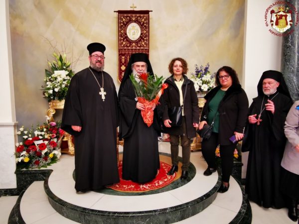 أقيمت خدمة القداس الإلهي السابق تقديسه في كنيسة القديسين قسطنطين وهيلانه في البطريركية ترأسها صاحب الغبطة كيريوس كيريوس ثيوفيلوس الثالث. بعد القداس الإلهي تلقى غبطته تهنئة آباء أخوية القبر المقدس وتمنياتهم بالصحة والازدهار وطول العمر.