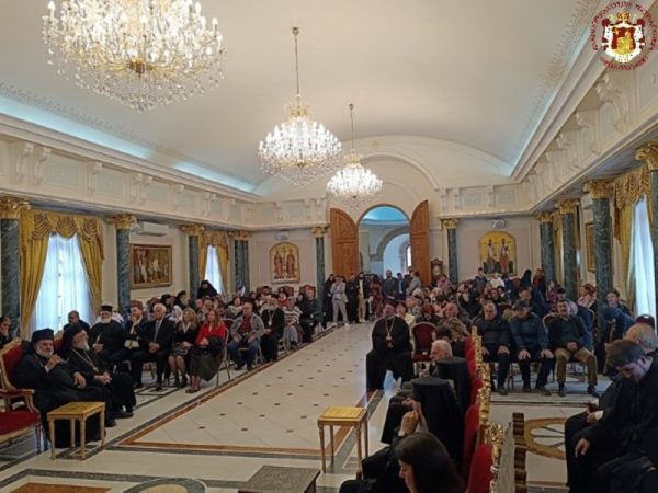 بعدها توجه صاحب الغبطة مع الآباء الى قاعة البطريركية للتهنئة, وقرأ سيادة المطران أريسترخوس السكرتير العام للبطريركية نيابة عن أخوية القبر المقدس كلمة تهنئة لغبطة البطريرك بعيد إسمه وشفيعه, تبعه القنصل اليوناني العام السيد أنجيلوسوبوبوس الذي هنأ صاحب الغبطة بكلمة القاها نيابة عن القنصلية اليونانية, تبعها كلمات تهنئة من ألاساقفة ووكلاء البطريركية والكهنة وممثلي الكنائس ألاورثوذكسية.